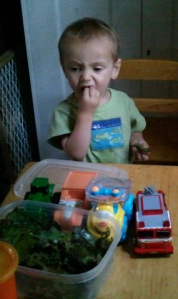 …to “Kale Chip.” You might recall that last summer my cousins began calling me “Kale Puff,” in reference to my snack of choice (in lieu of sugary, o-shaped, or fake-cheese snacks). While I’ve been a bit turned off to green foods of late, I feel the need to come clean on something. This morning, I climbed up onto the counter (I have been getting taller and stronger!), took down the container of freshly made kale chips, and proceeded to eat them. For breakfast. Go past “moo-moo milk” and yogurt, and head directly to greens.