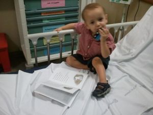 So the nice nurse came back, put something goopy on my fingers and wrapped it up with gauze. Mama tried to convince me that it looked like a dinosaur hand and that we could have fun with it. I wasn’t buying it. You’re not seeing a picture of it because it wasn’t on my hand long enough. C’est la vie.