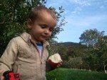 In the fall, Mama took me to an organic apple orchard not too far from our house. I knew just what to do. And, aside from the branches still being wet from that morning’s rain, I was really good at getting to the inside branches and picking big beautiful apples…each of which I, naturally, tried to take bites out of.
