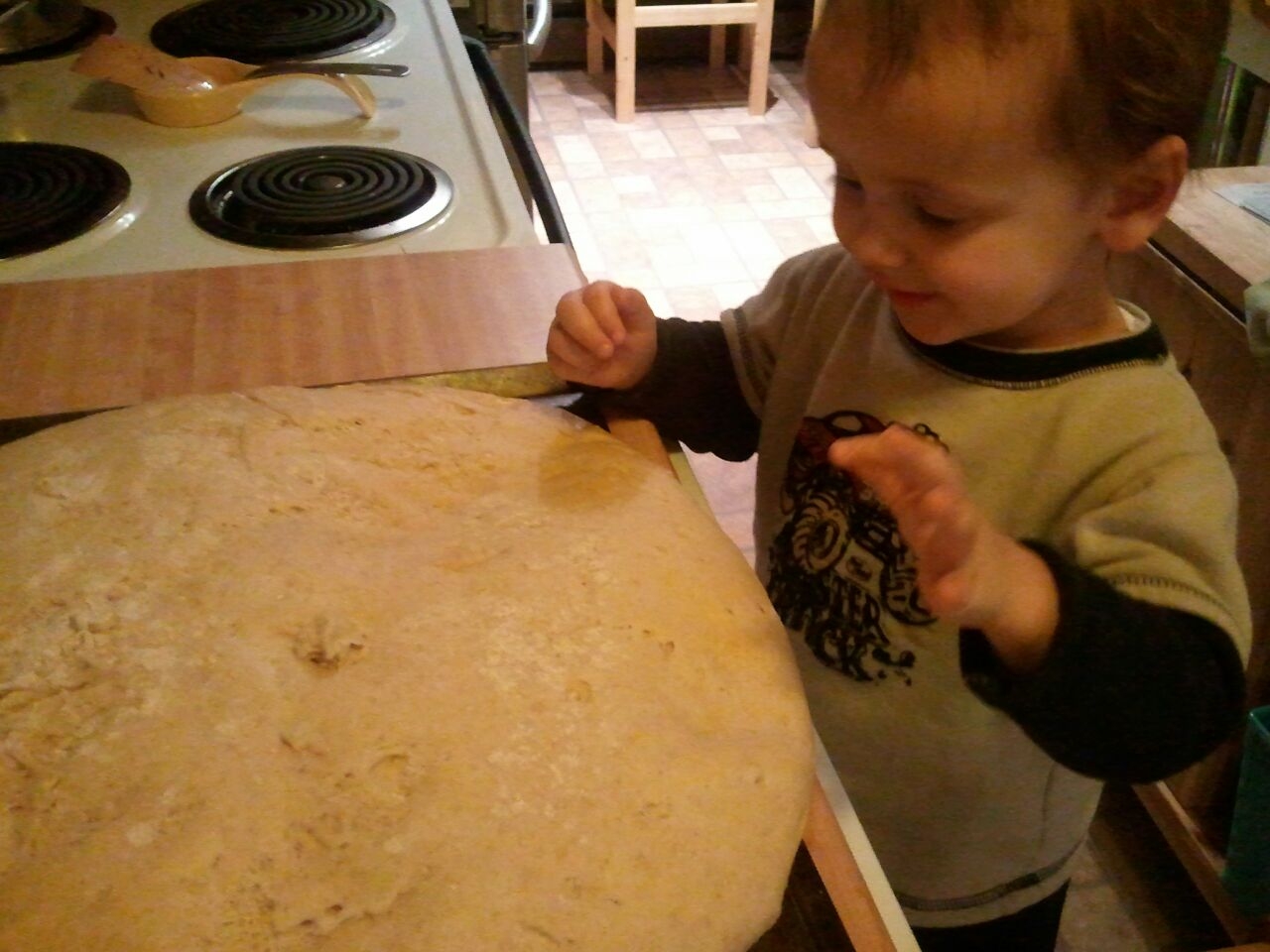 The dough was a little frightening as it flopped around the bowl. Mama didn’t get a picture of the gluten window. (I really couldn’t see it anyway.)