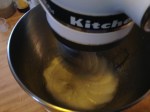 Then we put different sugar and butter in the mixing bowl and creamed them with the paddle. Mama told me to start slow, and I said “otherwise the dough will get angry.” What I meant was that it will fly all over the place. You’re not just combining the sugar and butter. What you’re doing is smashing the sugar into all that butter, coating all the little sugar granules with fat. This results in a lighter finished product with better lift.