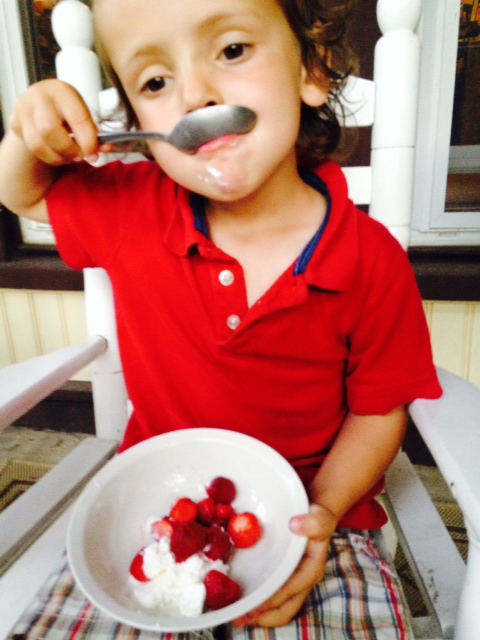 But the real show stopper, the easiest and most delicious part, was the fresh berries with whipped cream we ate for dessert. Mama says anyone with a whisk can whip cream, but not everyone does it correctly. She showed me how to do it right.