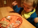 It’s finally warm(ish) today! Very windy, though. Mama and I had to hunt the neighborhood for our missing decoration from the front of our house. Successful mission, but because of it, we needed dinner fast. Papa and I were hon-gree. And Mama did not keep us waiting long.