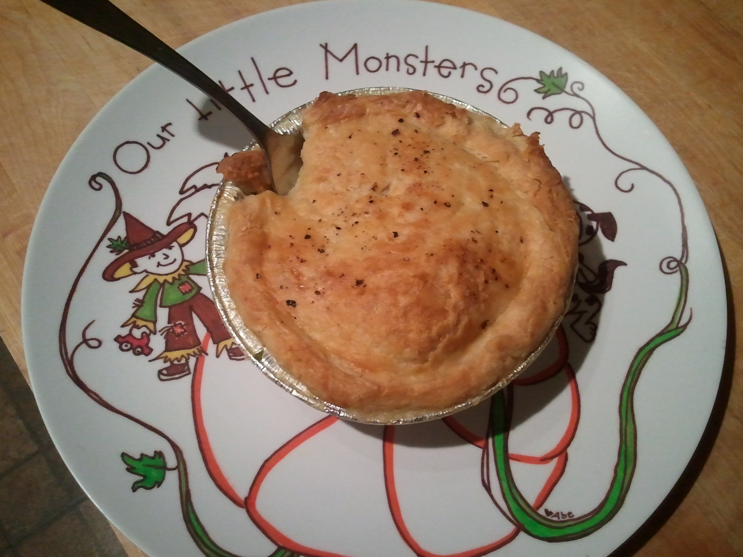 Mama likes to add the word “pie” to certain things. She thinks this will get me to eat them…and she’s often right. There’s tomato pie, for instance. And now I’ve been introduced to the “pot pie.” Specifically, a tiny little Jude-size pie filled with all kinds of savory yumminess.