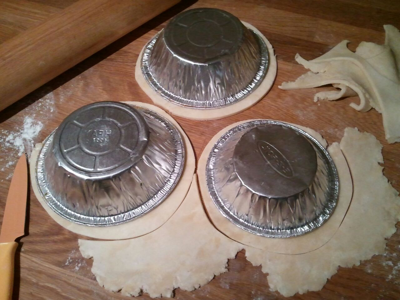 Turn a pie tin over onto the dough and cut the circles a little larger than that.