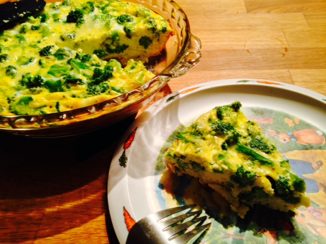 Of course she tried calling it an “egg pie” and a “broccoli pie,” which only made matters worse. After much cajoling, I finally tried a tentative bite. You can imagine what followed.