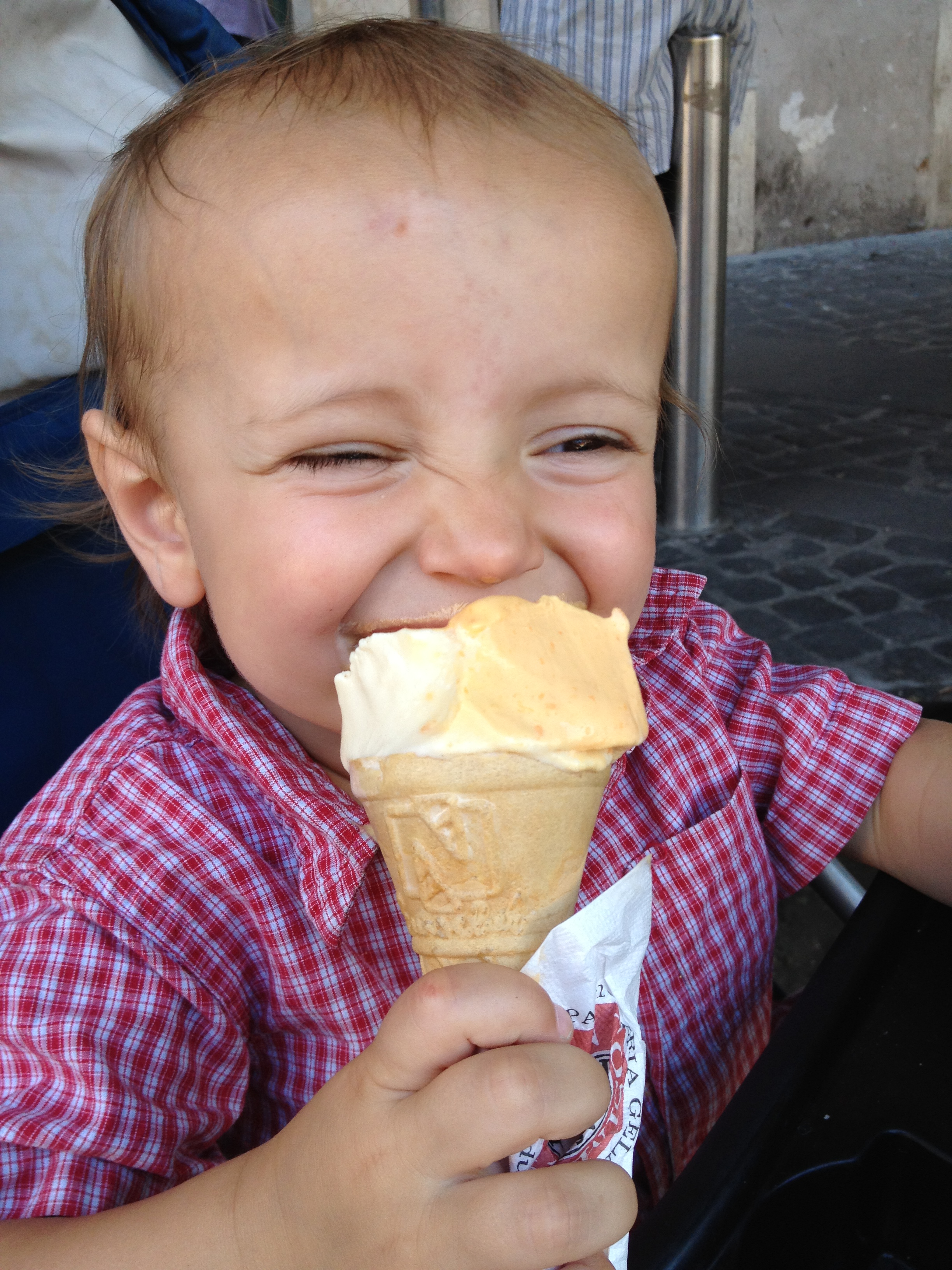When I was in Italy, I had something I’d never eaten before: gelato. Mama and I had it every day (I think she had it twice a couple times, too, which she thinks I don’t know about). We ate gelato with pears and Nutella, gelato with basil and cantaloupe, gelato in cones, gelato in cups… I can’t even tell you all the kinds of gelato we had!
