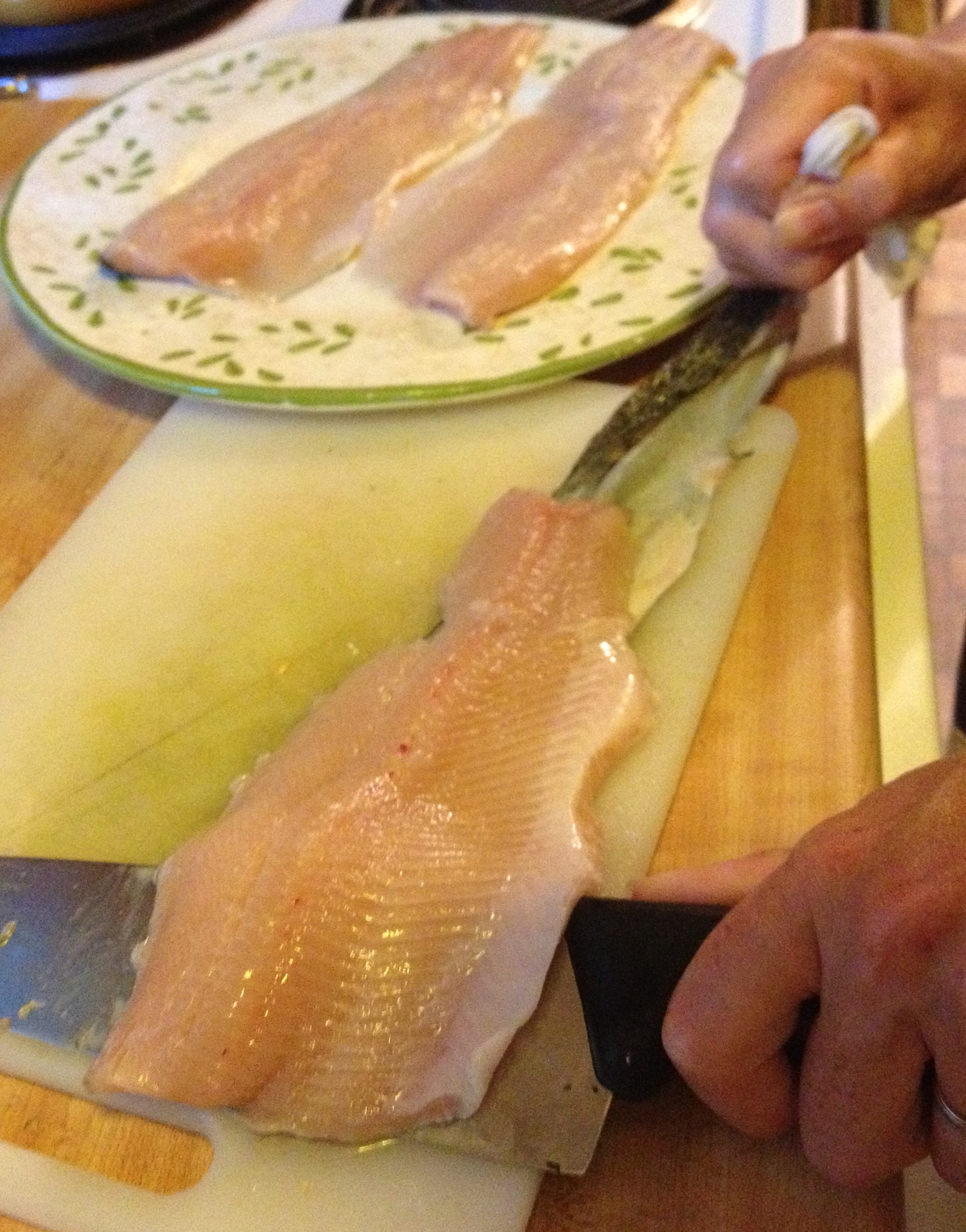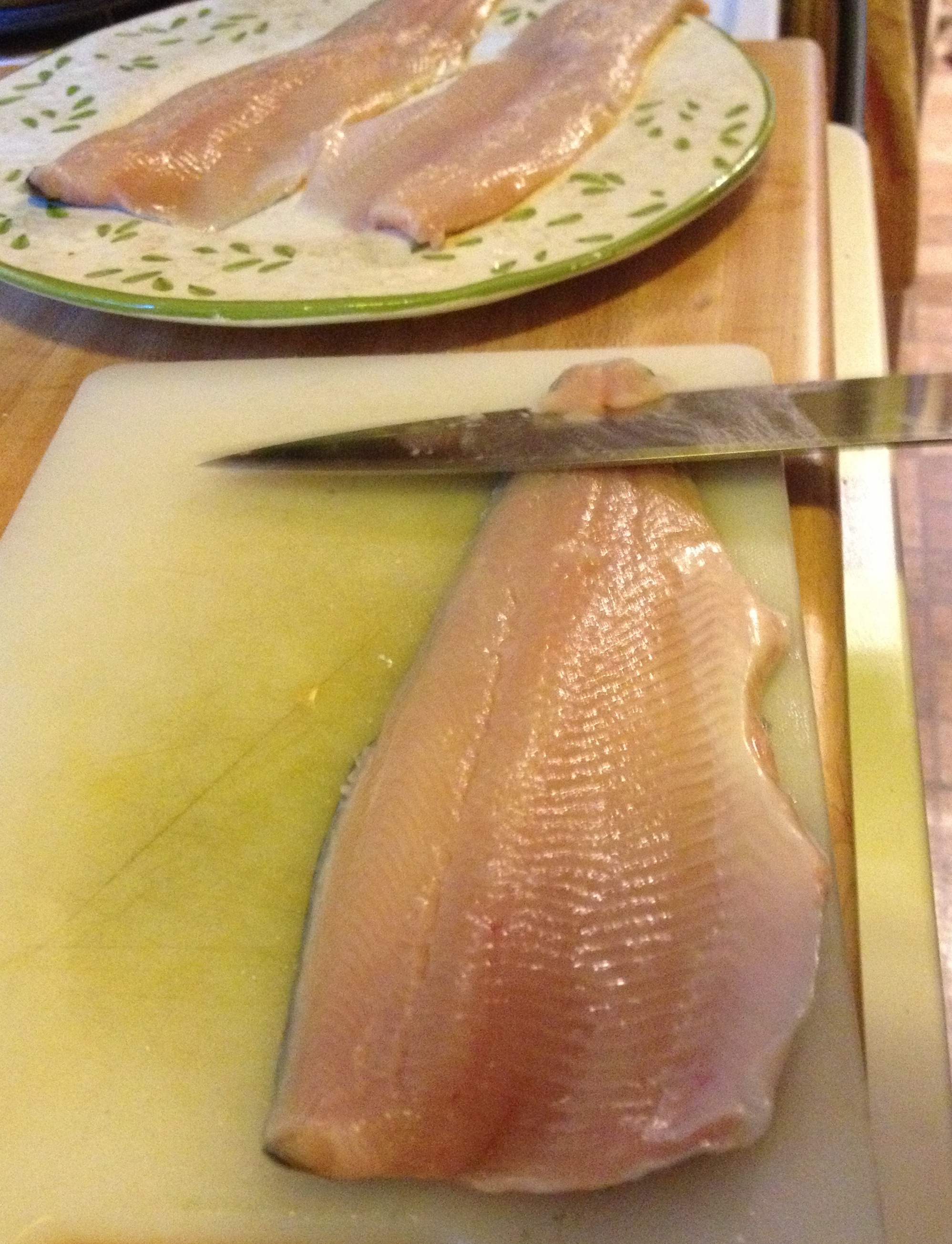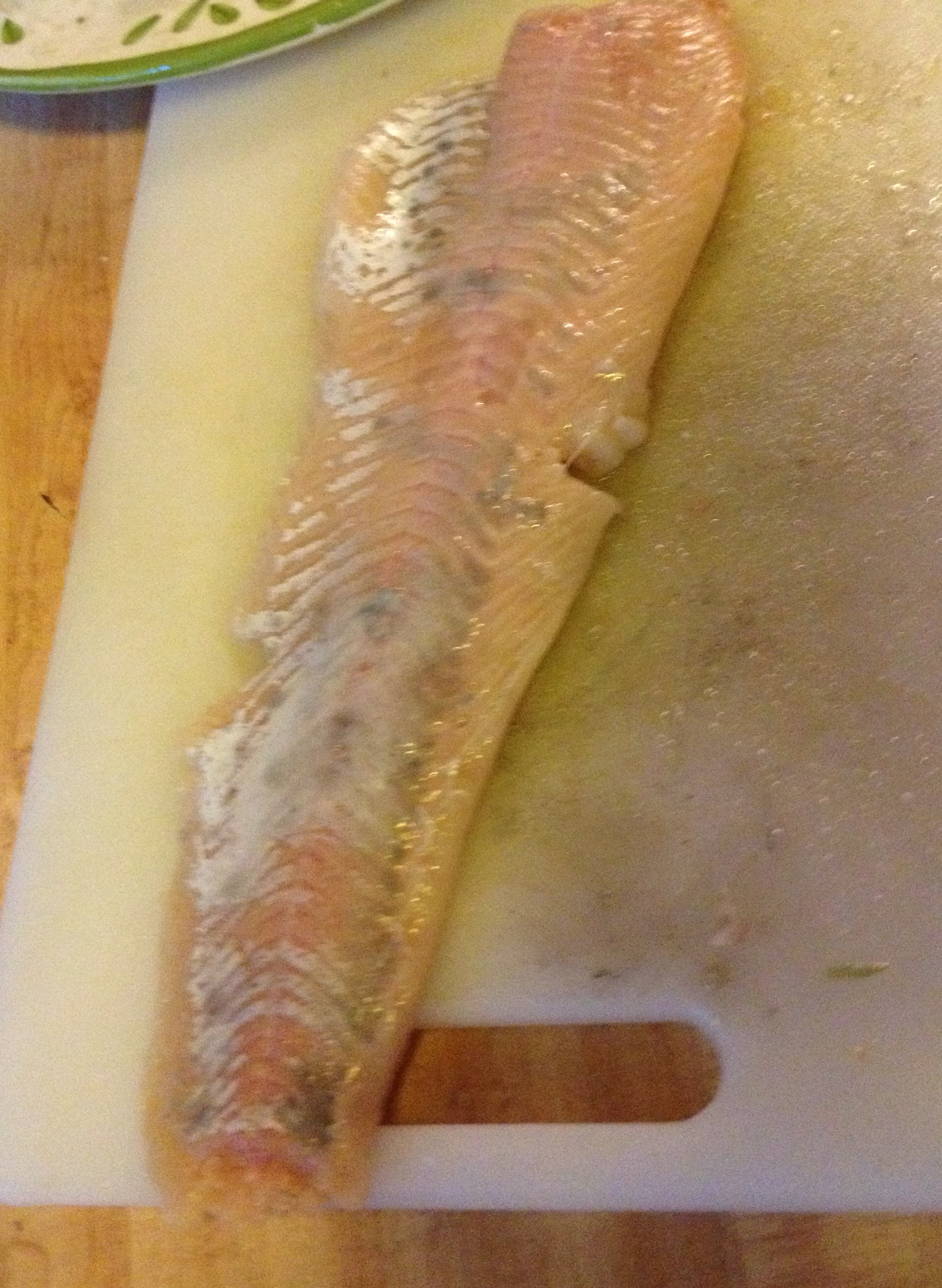 Mama brought home some Idaho-caught rainbow trout from the fish market. Here’s what it looked like: